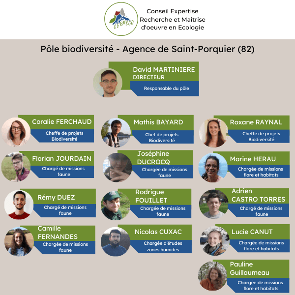 Le pôle biodiversité, sous l’égide de CERMECO, se compose d’une vingtaine d’écologues.