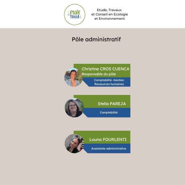 - Christine Cros-Cuenca : Responsable du pôle administratif d’Etcée Terra.