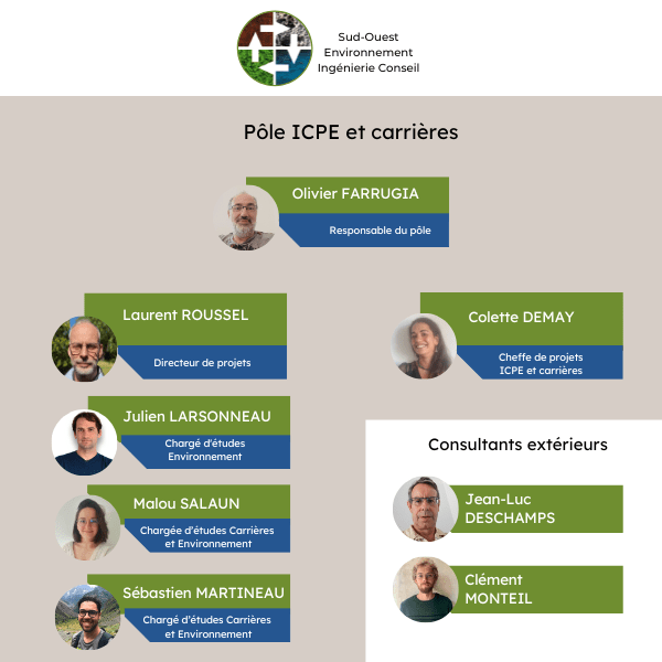 - Olivier Farrugia : Président du groupe et Responsable des pôles Travaux et ICPE & Carrières (SOE Ingénierie Conseil).