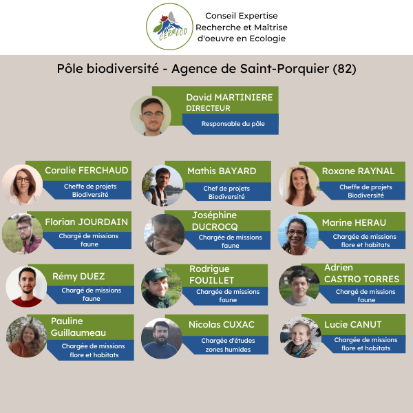Le pôle biodiversité, sous l’égide de CERMECO, se compose d’une vingtaine d’écologues.
