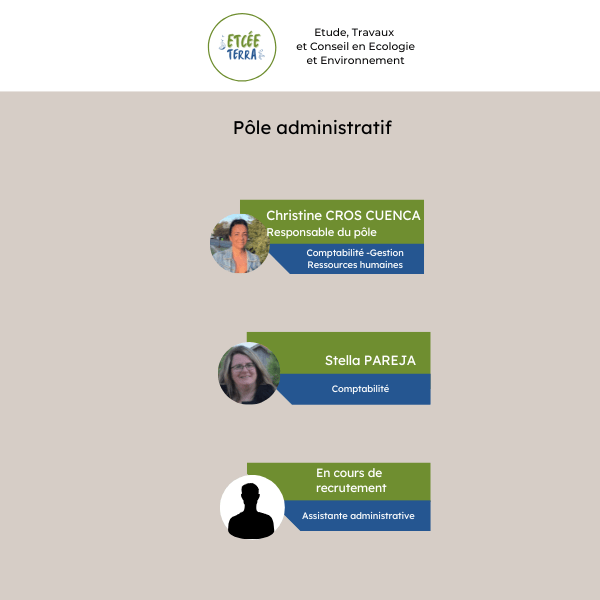 - Christine Cros-Cuenca : Responsable du pôle administratif d’Etcée Terra.