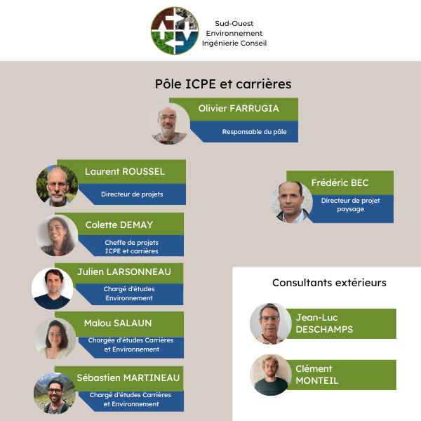 - Olivier Farrugia : Président du groupe et Responsable des pôles Travaux et ICPE & Carrières (SOE Ingénierie Conseil).