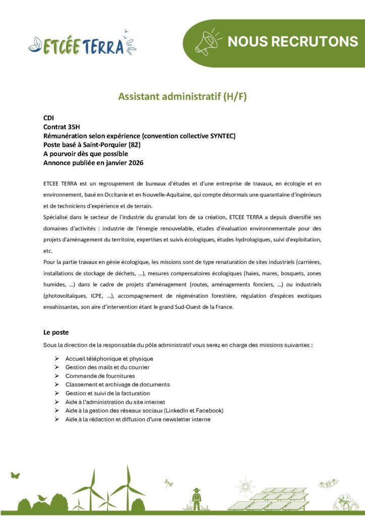 ETCEE TERRA recrute un(e) assistant(e) administratif(ve)